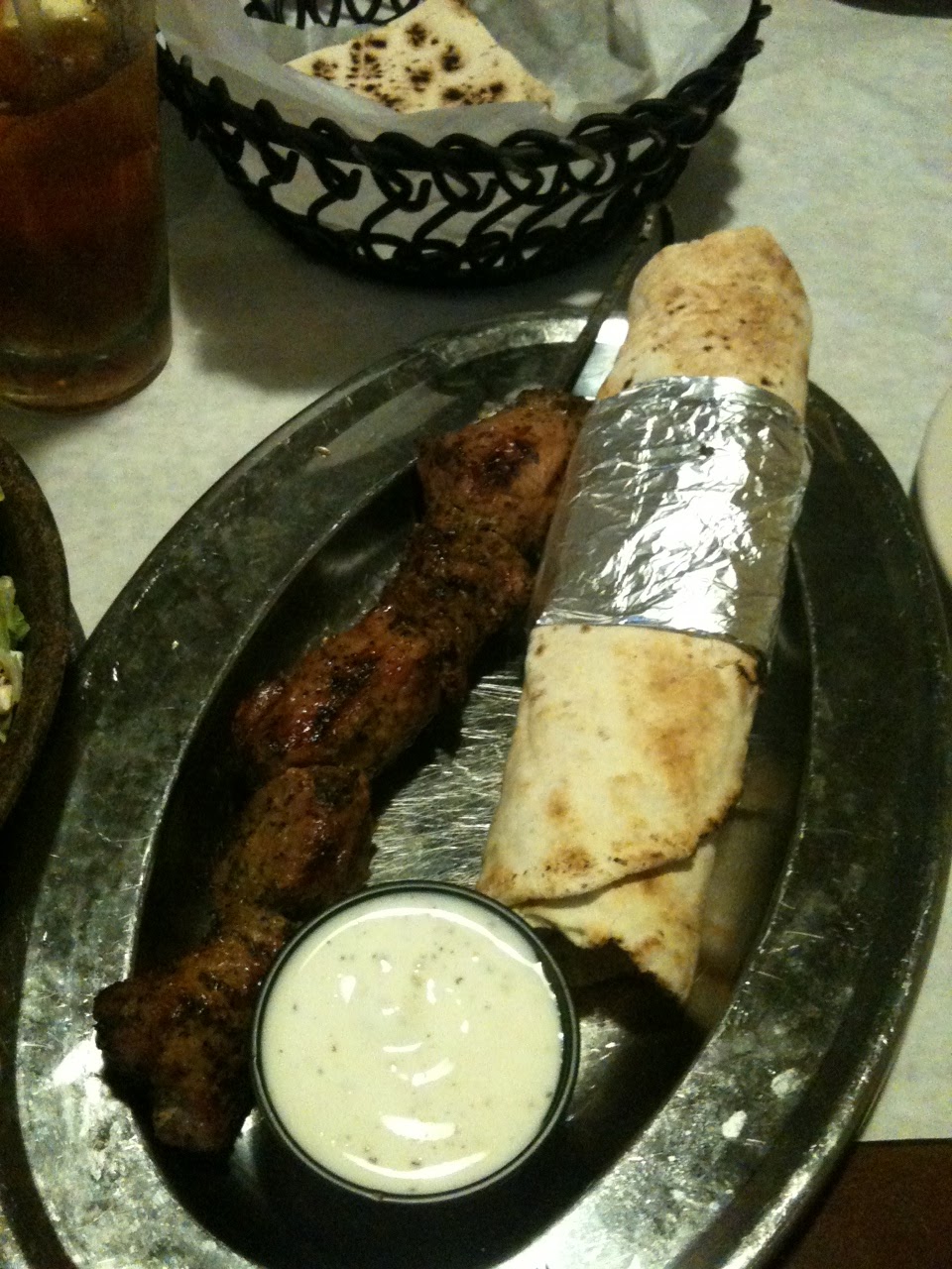 ANYWAY, we had dinner at Symeon's, recommended by a friend who goes to Utica for work often. It wasn't super crazy, despite the thousands of people in town for the run. They also have a lot of tables. The souvlaki was so flavorful and piping hot, and those pieces of well-seasoned meat contrasted beautifully with my antipasto plate (basically Greek salad with dolmades--grape leaves--on top). My only criticism is that the bread to wrap the souvlaki in wasn't warm, which made it unappetizing. I ignored it. My mom (who ran the BM15k in 1:34!) really enjoyed her salmon with grilled vegetables and rice pilaf. Light and healthy, getting ready to run.